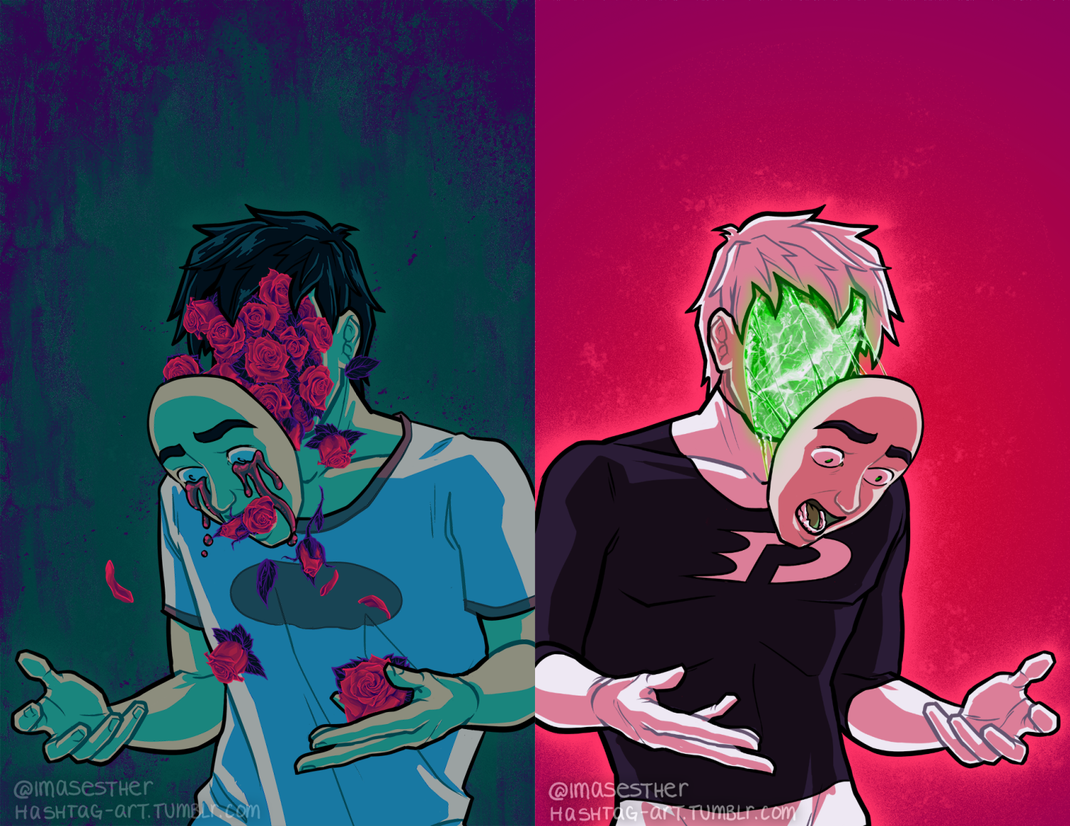 A Study in Ectobiology/A Study in Blood Blossoms: a double-sided diptych print. You can choose which side you want to view/display--or get two to see both at the same time!